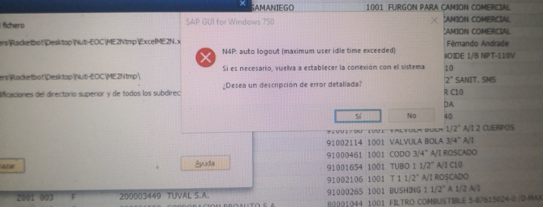 Hola, qué tal! Tengo un error al mandar a ejecutar un robot desde el orquestador. Si está conectada la instancia del equipo. El error es el siguiente: Execute bot start [‘C:\\\\\\\\Rocketbot\\\\\\\\rocketbot.exe’, ‘-db=C:\\\\\\\\noc\\\\\\\\robots\\\\\\\\Google\\\\\\\\robot.db’, ‘-start=Google’] Wait for logs Waiting -Connecting Security check db: C:\\\\noc\\\\robots\\\\Google\\\\robot.db Stopping ...