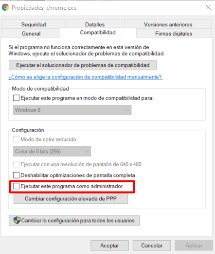 Revisa también que en propiedades de Chrome->Compatibilidad, no esté marcado el check “Ejecutar este programa como administrador”
