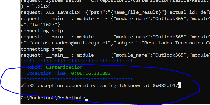 Hola estoy programando un robot que en el Studio funciona sin problemas, en la imagen se adjunta el error, por algún motivo un ciclo for se termina sin motivos aparentes, en cambio en el Studio funciona impecable, hasta finalizar todo, ...