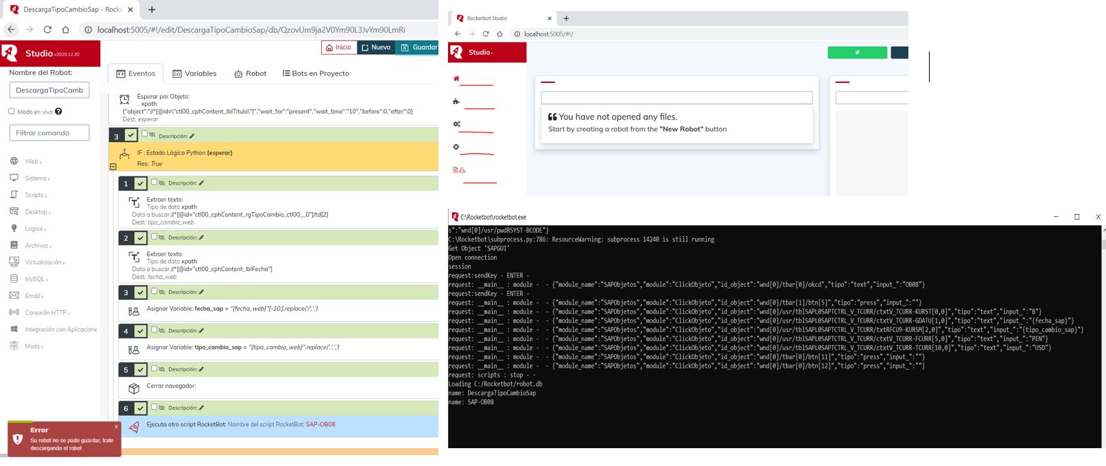 Buenas tardes, Soy nuevo en Rocketbot y estoy realizando algunas pruebas con SAP, el inconveniente se suscita cuando trato de iniciar sesión, no inicia y solo abre SAP.