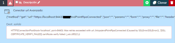 Estoy utilizando el comando “Conectar url Avanzado”, para consumir un servicio REST, pero el mismo funciona bien si el servicio esta publicado sin SSL (http://miservicios:8080/lista). Ahora que estoy queriendo consumir el servicio publicado con SSL (https://miservicios:8443/lista) pero al realizar el ...