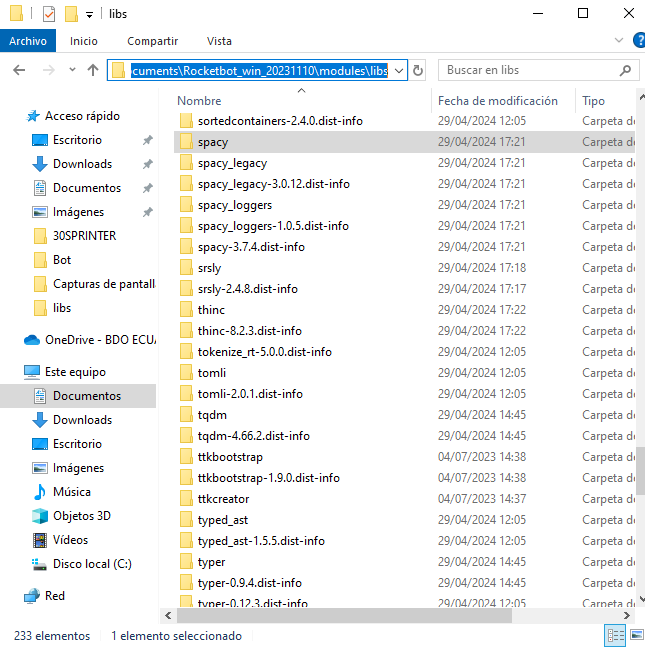 Si las tengo en la carpeta de Rocketbot.