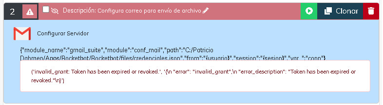 Hasta ayer, la configuración del servidor Gmail con Gmail Suite me funcionó sin problemas, pudiendo operar los comandos del módulo correctamente. Cabe señalar que se configuró acceso a Gmail vía Google Cloud. Volví a generar nuevas credenciales pues el mensaje ...