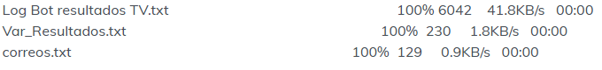 Hola!! Esos datos son los que se recogen de la consola al pasar esos archivos por SSH a una carpeta. Requiero filtrar la cantidad de "100%" que se muestran para así validar que el proceso se finalice de manera correcta y poder enviar un mensaje de éxito, de lo contrario enviar un mensaje de error. NRead more
