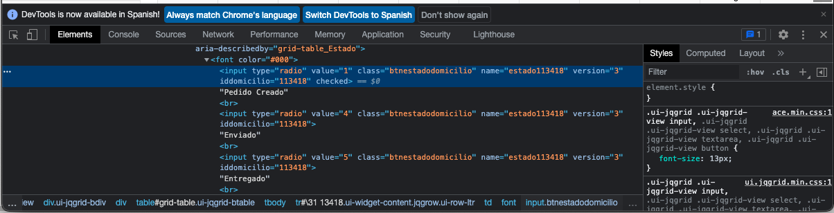 Hola necesito ayuda con lo siguiente, tengo que obtener el cual de las casillas de checkbox esta seleccionada, aplique el comando desde JS: return document.querySelector(‘#\\\\31 13418 > td:nth-child(10) > font > input:nth-child(1)’).checked; donde el selector es: #\\\\31 13418 > td:nth-child(10) > font ...