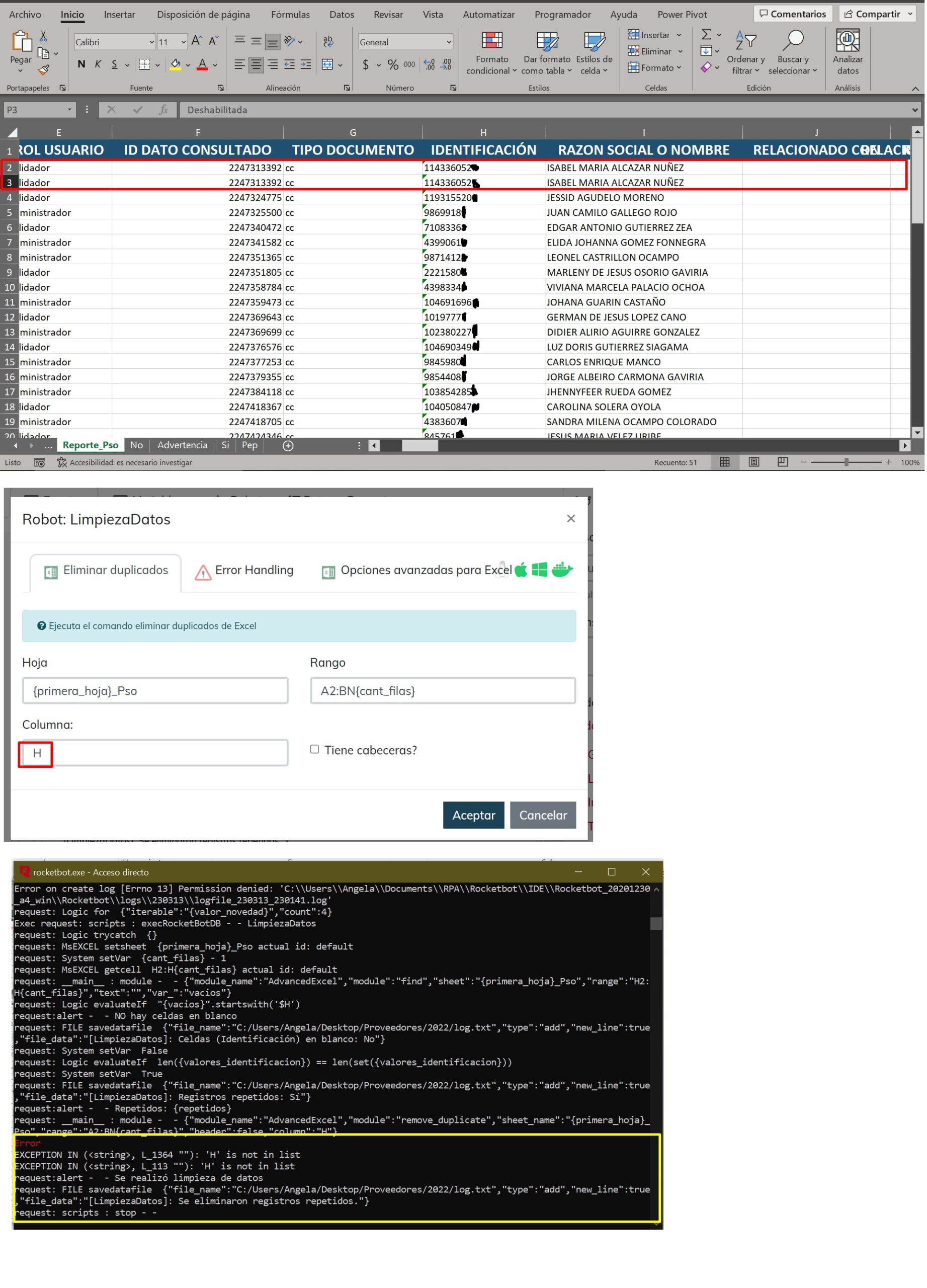 Hola! Por favor alguien podría ayudarme? tengo un archivo de Excel que tiene registros con información repetida, pero cuando utilizo el comando “Eliminar duplicados” y al ejecutar el robot, me aparece Error. La columna por la cual debe validar los valores ...
