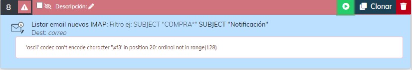 Buenas noches Espero se encuentren bien Tengo el siguiente problema a la hora de querer listar un correo con el modulo email: A la hora de querer listar pongo el siguiente comando SUBJECT “Notificación” Y me sale el siguiente error: ascii’ codec can’t encode ...
