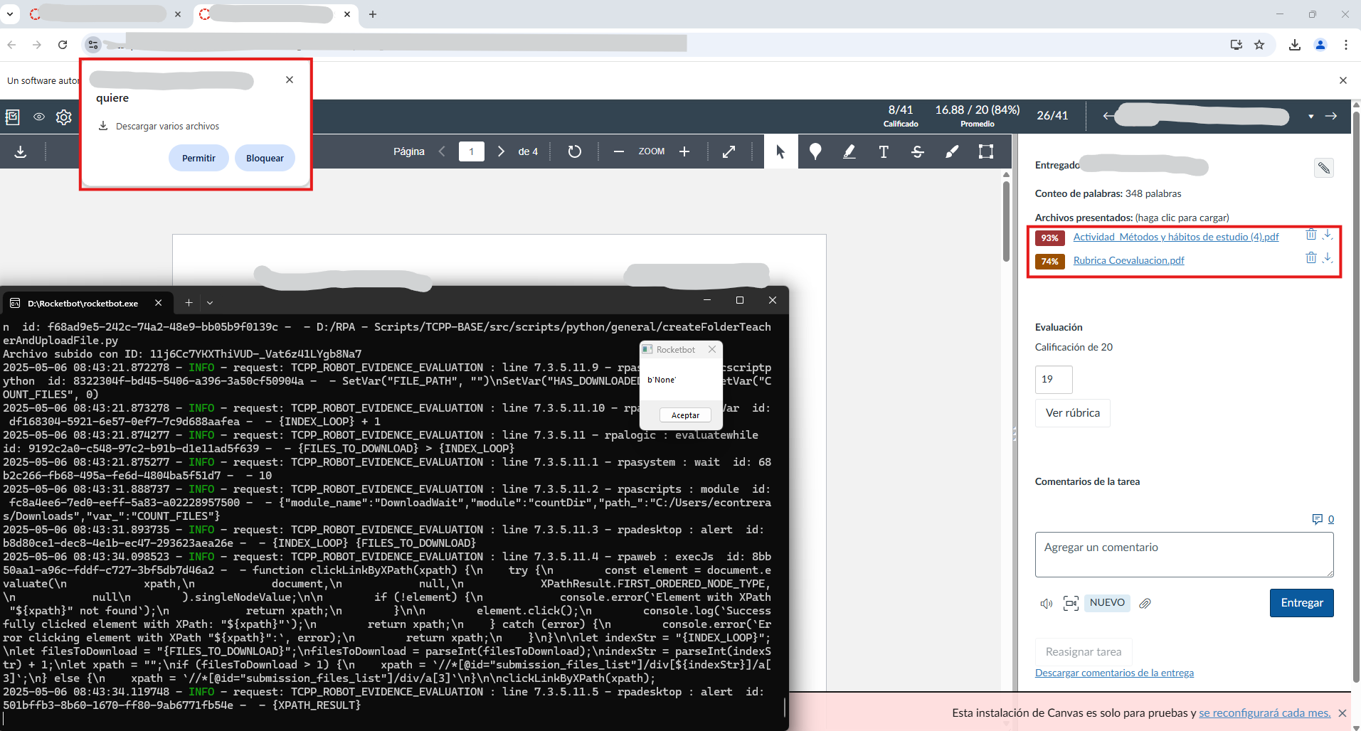 Como se ve en la imagen adjunta aparece un pop out al momento de querer descargar el segundo archivo, intente utilizar el modulo “acceptAlert” pero no funciona, solo funciona para pop outs generados por JavaScript. ¿Hay alguna manera para poder ...