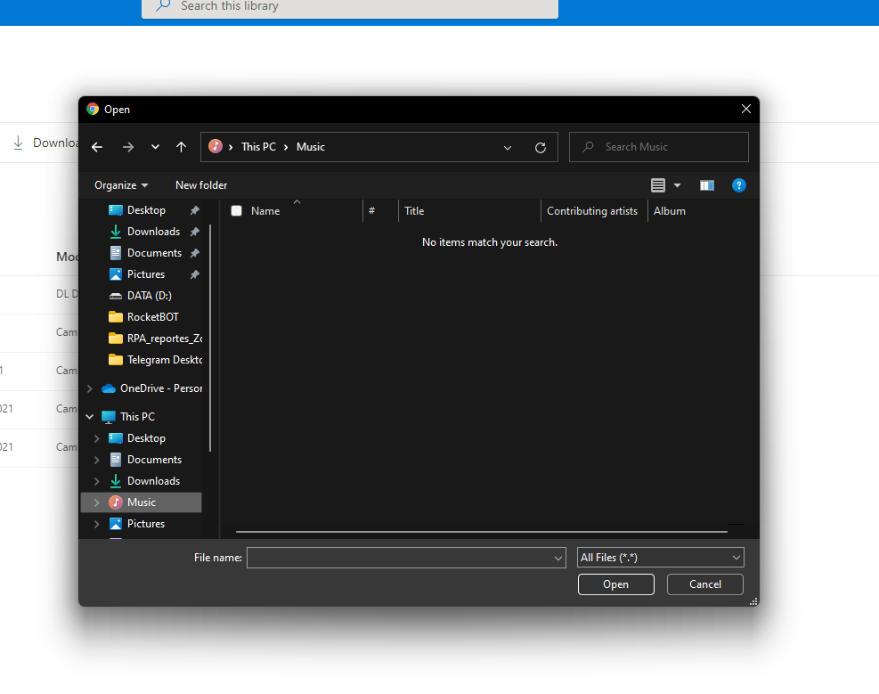 necesito desde rocketbot insertar el nombre del fichero en la ventana de OPEN del navegador, para subir a sharepoint un fichero, como podria llegarle al input de esa ventana emergente que levanta el navegador, esa ventana se levanta desde un ...