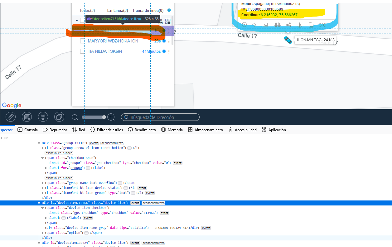 (en azul la ventana emergente que sale luego de dar clic y en amarillo el dato que requiero capturar)