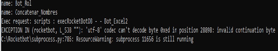 Estimados, Rocketbot me entrega el siguiente error