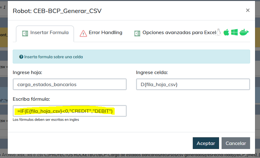 En excel me funciona perfecto pero al realizar con el robot me arroja error