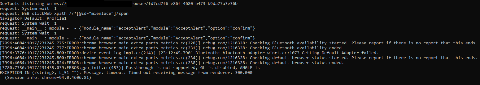 Gracias por tu respuesta Bender, ésta es la consola cuando ejecuta el 2do “Aceptar Alerta”.